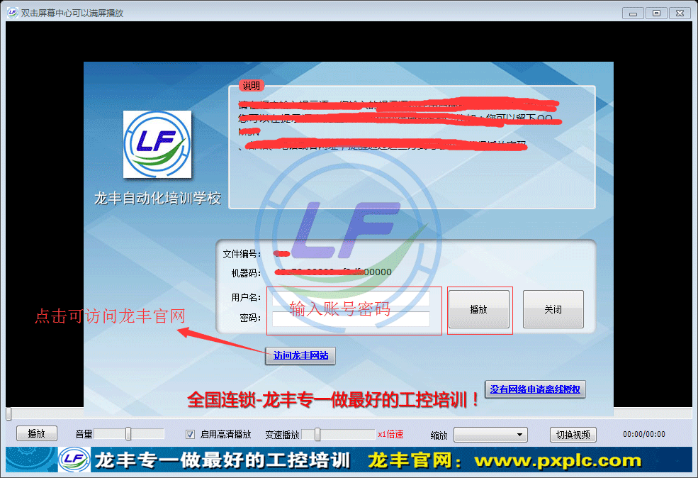 在下載中心下載的網絡版整套視頻都是用龍豐專用播放器播放的!!