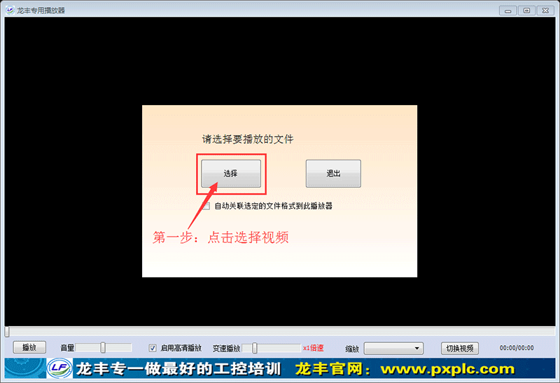 1. 聯網狀態下,打開龍豐專用播放器,點擊選擇按鈕(第一次打開需要驗證賬號密碼,一年內再次打開本視頻不需要驗證賬號密碼)