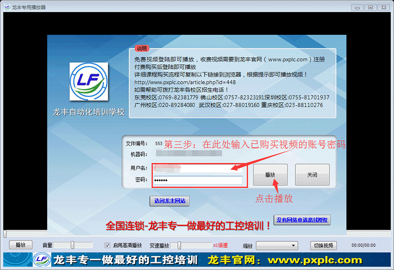 網絡版視頻-離線播放步驟(請確認下載的視頻與購買的視頻相符,且必須用龍豐專用播放器播放)